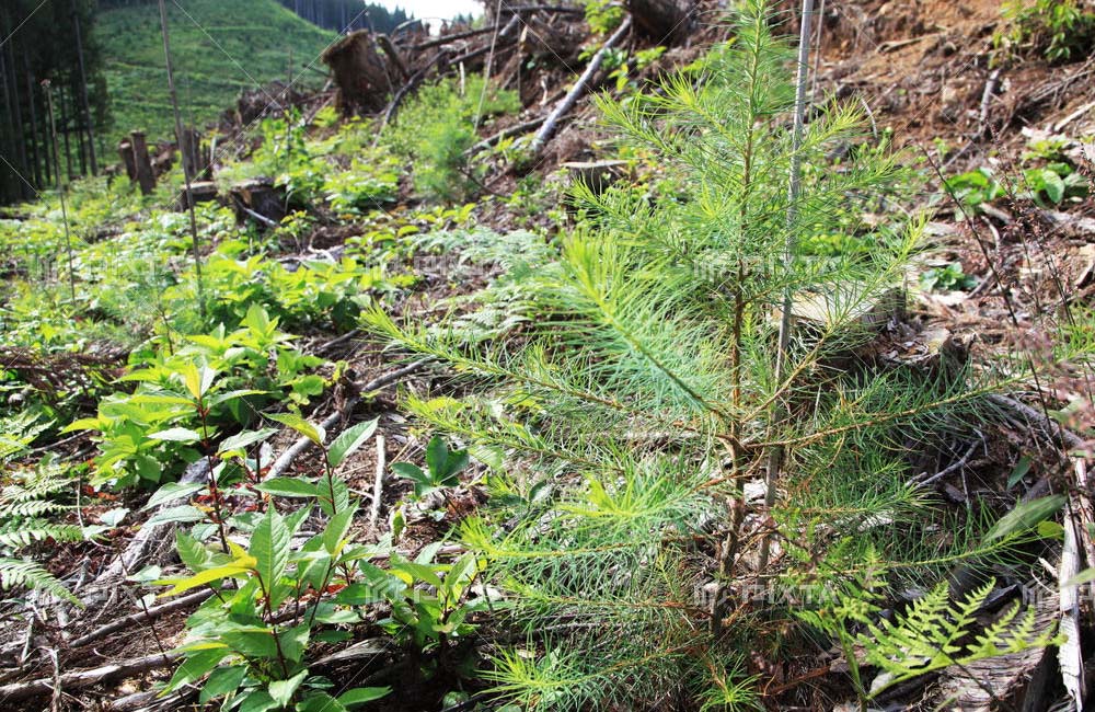 苗木の十分に日光が当たり、生育を妨げないよう雑草の刈り取りを行います。植え付け後数年間毎年夏に行います。