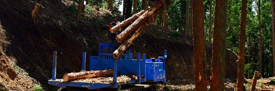 造材した木を現場からトラックの入ることのできる場所へ運び出します。